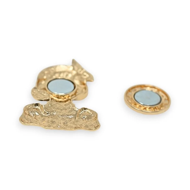 To preserve the shine and beauty of your retro brooch over time, a few simple gestures are sufficient. Avoid contact with water and chemicals that could tarnish the gold-toned metal. Regular cleaning with a soft cloth is usually enough to maintain its shine. For storage, opt for a jewelry box or a padded jewelry case to protect the brooch from scratches and dust. With these precautions, your vintage fashion accessory will retain all its charm to illuminate your outfits for many years to come.