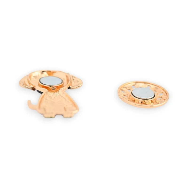 This adorable magnetic brooch features a stylish dog in shades of pink and burgundy, sporting trendy glasses and a matching bow tie. Standing at 6 cm tall, this unique fashion accessory combines retro charm and modernity with its golden finishes and original design. The body striped in different shades of pink adds a touch of softness and elegance to this distinctive piece. Carefully crafted details such as the small blue nose and pink glasses give this brooch an endearing character and a unique personality. A perfect accessory to brighten up your outfits while expressing your love for our four-legged friends with style and originality.
