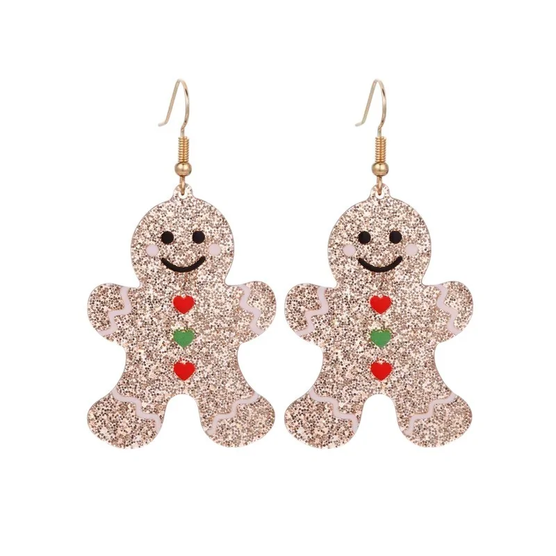 Add a touch of Christmas magic to your outfit with these adorable gingerbread man-shaped costume earrings. Made of glittery golden resin, they measure 4.5 cm in height and are adorned with a cute smile and small colorful hearts. Their hook clasp ensures comfortable and secure wear. These festive earrings will bring a whimsical and cheerful note to your holiday outfits.