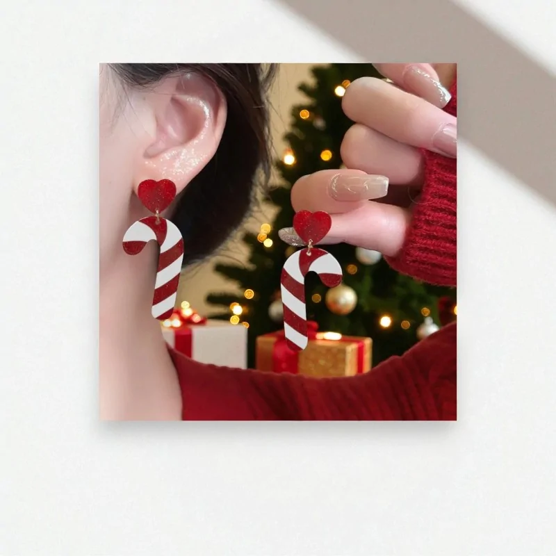 These magnificent Christmas novelty earrings instantly transform your look into a festive celebration. Inspired by the traditional Christmas candy cane motif, they perfectly capture the holiday spirit with their characteristic red and white stripes. The quality resin used guarantees a lightweight and comfortable piece of jewelry, ideal for wearing all day during your year-end events. Their perfectly designed dimensions of 6x2.5cm offer a noticeable presence without being overwhelming, adapting to all festive clothing styles.