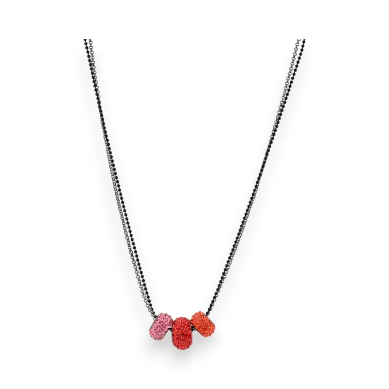 This fashion necklace from the Ikita brand seduces with its elegant and original design. The 21 cm black chain offers a sober base that perfectly highlights the colorful rhinestone beads adorning it. These charms in vibrant hues - orange, red and pink - bring a touch of cheerfulness and whimsy that will not fail to attract attention. With its 3 cm extension, this necklace easily adapts to different body shapes for optimal comfort.