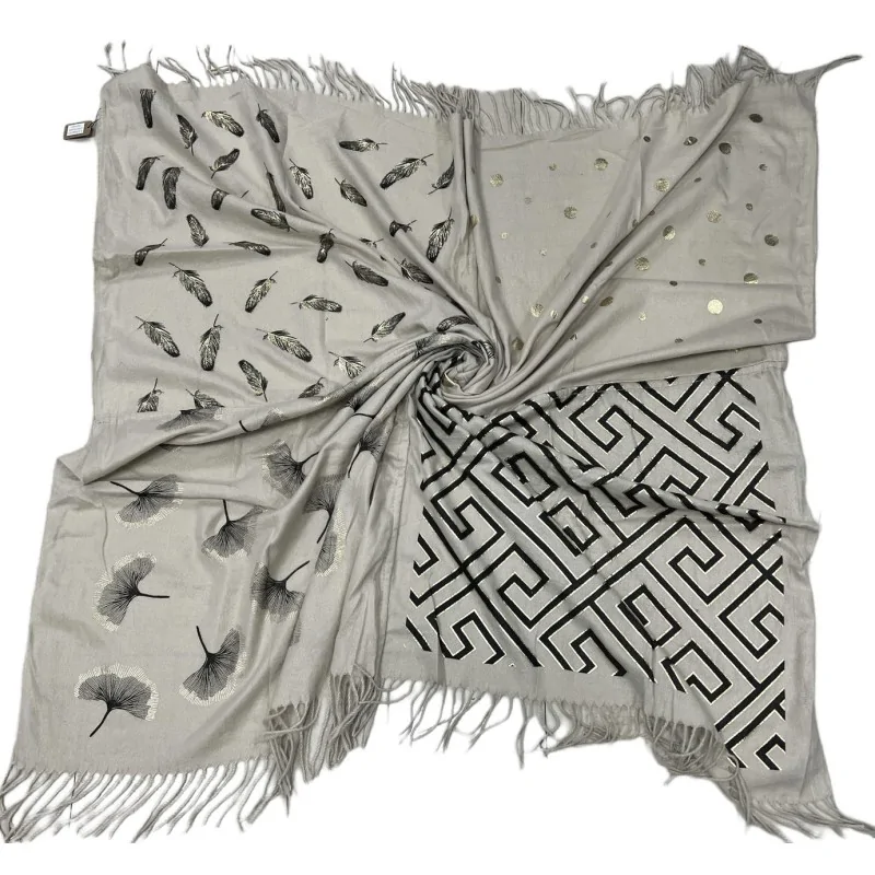 This revolutionary patchwork scarf offers 4 different sides for versatile everyday style. Made from ultra-soft and warm fleece material, it wraps you in softness while protecting you from the cold. Its timeless beige color harmonizes perfectly with the refined golden finishes that bring a touch of elegance to your outfits. Generous dimensions of 140x140cm for optimal comfort.