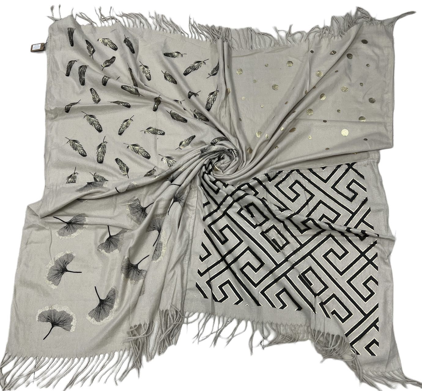 The patchwork scarf stands out for its exceptional versatility which makes it the essential accessory for your wardrobe. Thanks to its unique design with 4 different sides, you have multiple style possibilities without needing several accessories. The timeless beige color harmoniously matches all the colors in your wardrobe, while the delicate golden finishes bring that touch of luxury that makes the difference. Its ultra-soft fleece material provides incomparable comfort against the skin, ideal for cool days as well as colder evenings.