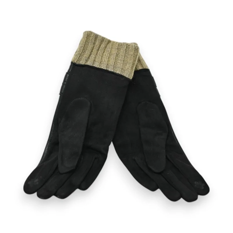 These elegant and chic gloves combine 3 noble materials - synthetic, faux suede, and wool - for a refined style and optimal comfort. Their two-tone black and taupe design adds a touch of sophistication, while the warm velvet lining ensures effective protection against the cold. Available in one size fits all, they adapt perfectly to all hands to accompany you in style throughout the winter.