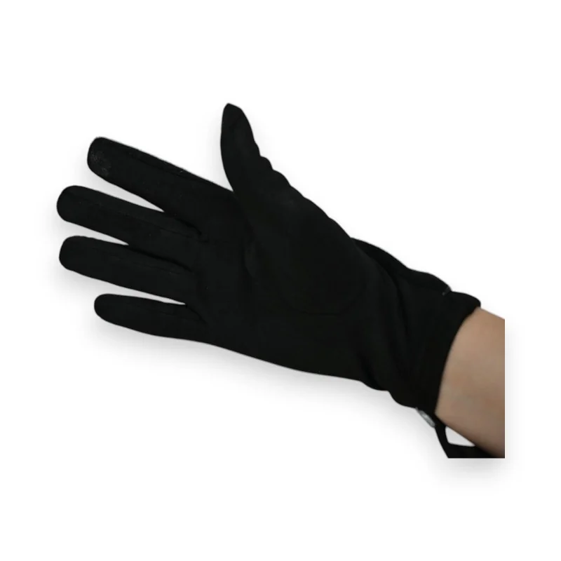 These dual-material gloves combine style and warmth to face winter with elegance. Made of black suede and acrylic, they feature a soft velvet lining that provides optimal comfort and warmth. Their sleek design and one-size-fits-all make them an essential and easy-to-wear accessory for everyday use.
