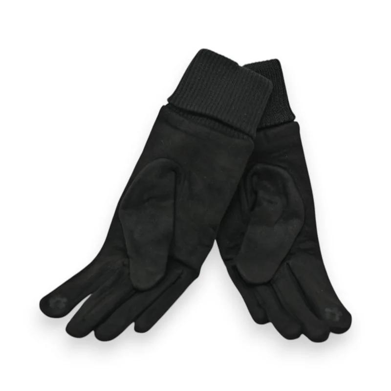 Protect your hands from the cold in style with these black bi-material gloves. Combining the softness of suedine with the durability of polyester, they offer a sophisticated look while ensuring excellent thermal protection. The inner velvet lining provides an incomparable feeling of warmth and comfort, even in very cold weather.