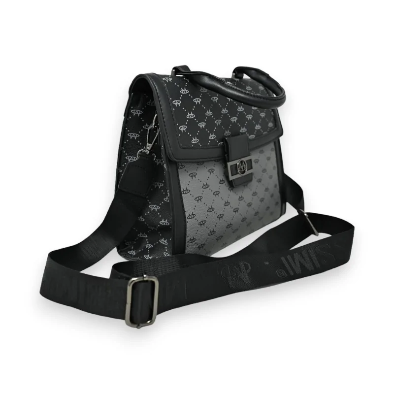 This two-tone rigid handbag combines style and practicality. Its modern design combines gray and black for a chic and trendy look. With dimensions of 28x25cm, it offers optimal space without being bulky. The elegant closure with a dark gray metal jewelry plate adds a refined touch. Inside, a central pocket with multiple compartments allows you to organize your belongings. The rigid handle on top and the wide black fabric shoulder strap offer comfortable carrying. A zippered pocket at the back cleverly completes this versatile bag.