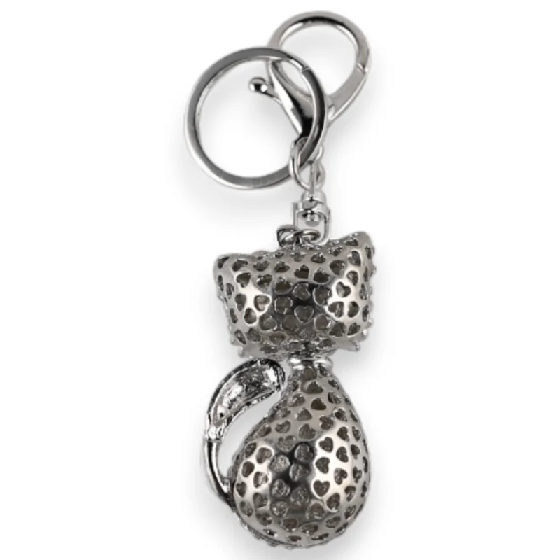 This shabby-style keychain in the shape of a cuddly cat evokes a sweet...