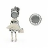 Fall for the retro charm of this women's magnetic brooch featuring an elegant Parisian with a vintage style. Dressed in a white polka dot dress on a black background and a striped sailor top, this Parisian jewel perfectly captures the essence of authentic French style. Refined details include red glasses, a matching handbag, and a white crown in her hair. High-quality enamel finish enhanced by sparkling decorative rhinestones.