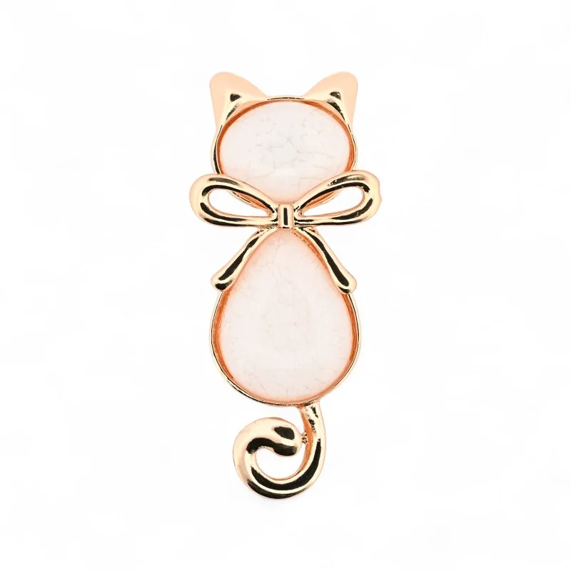 Indeed, the crackled white natural stone creates a unique pink marbled effect on each piece, making your cat brooch exclusive.