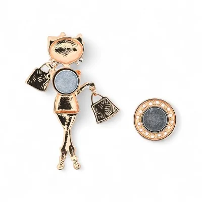 Every detail of this fashion magnetic brooch tells a story: the oversized glasses evoke glamorous mystery, the two bags symbolize successful shopping and love of accessories, while the black outfit embodies timeless Parisian chic. This perfect piece for fashionistas, self-proclaimed shopaholics and lovers of stylish cats instantly brings a touch of chic humor to your outfits.
