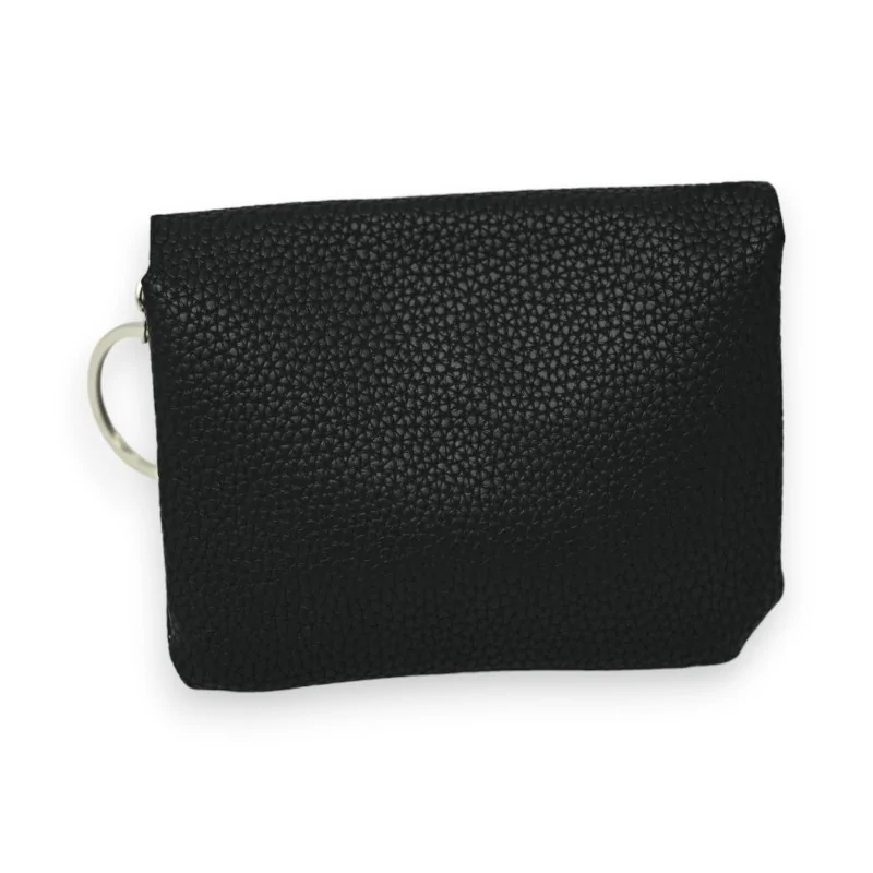 This sophisticated wallet, made from a synthetic material with a grained appearance mimicking leather, comes in a classic black tone, adding a touch of refinement to any ensemble. Measuring 11x9 cm, it is designed for optimal organization with two distinct compartments, allowing for a clear separation of your cards and money. A practical snap system on the front ensures easy opening, while a zipper inside one of the compartments provides added security for your valuable items. Completed by a chain with a ring, this wallet is ideal for attaching keys, merging style, security, and practicality into one essential accessory.