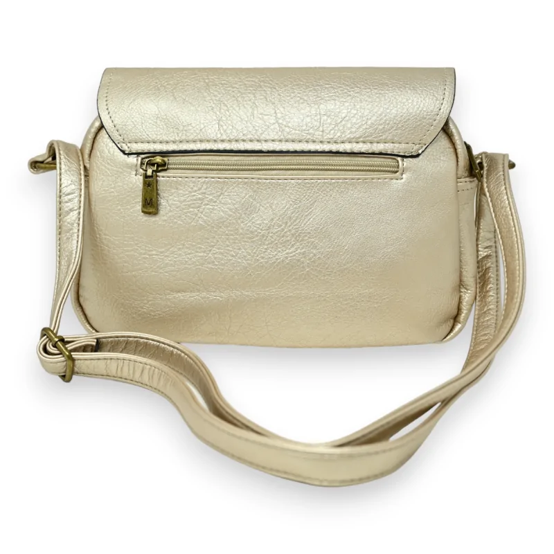 Let yourself be seduced by this golden shoulder bag, the must-have accessory for the warm season. With its silhouette evoking a modern satchel, it combines aesthetics and practicality. The clever design includes several pockets for flawless organization: a flap with a dual functionality offering a hidden pocket inside as well as another on the top, perfect for quick access. The closures by two magnetic straps add a touch of security and ease of use. On the front, two additional pockets and a spacious main compartment, with a central partition and a zipper, allow you to keep your belongings well organized. The flat inner pockets and a zippered external pocket at the back complete this picture, making this bag exceptionally functional. With its dimensions of 24x22 cm, it is the ideal companion for those looking to combine style and functionality, offering a multitude of "hiding places" for optimal organization.