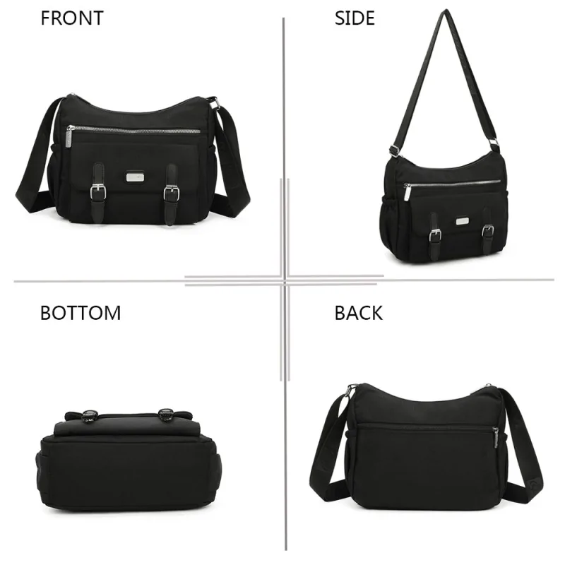 This Gallantry Paris shoulder bag combines style and functionality. Made of durable black nylon, it offers multiple storage spaces thanks to its numerous pockets on the front, sides, back, and interior. Its compact 25x23 cm format makes it ideal for everyday use. The elastic pockets on the sides allow you to keep your personal belongings within easy reach. A practical and elegant accessory to carry essentials with style.