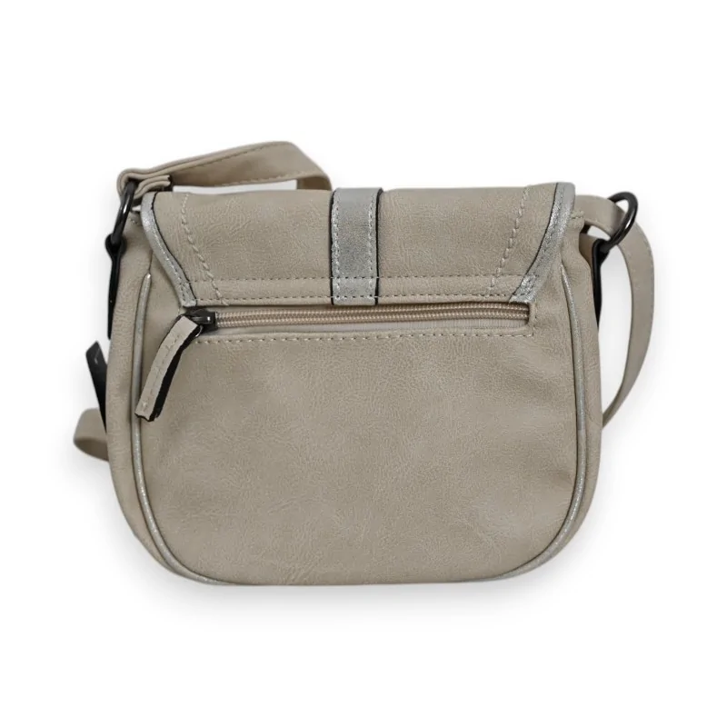 The crossbody bag from the Mélanie Paris collection stands out with its sleek design and meticulous finishes. The beige synthetic material gives this model a sophisticated look while ensuring optimal durability. The flap with its magnetic strap not only provides secure closure but also adds a touch of contemporary elegance. The interior lining with vintage patterns brings a retro-chic dimension that is the charm of this accessory.