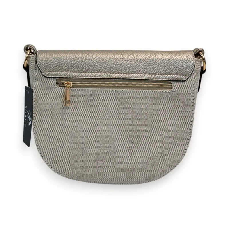 The Mélanie Paris shoulder bag stands out for its design combining noble materials and careful finishes. The combination of beige linen and golden synthetic details creates an elegant contrast, enhanced by golden lurex threads that add a subtle touch of shine. The rounded flap, adorned with a matching magnetic strap, offers both secure and aesthetic closure. The quality of the selected materials ensures optimal durability while maintaining an appreciable lightness for everyday use.