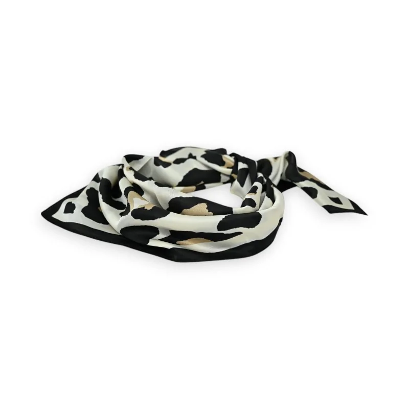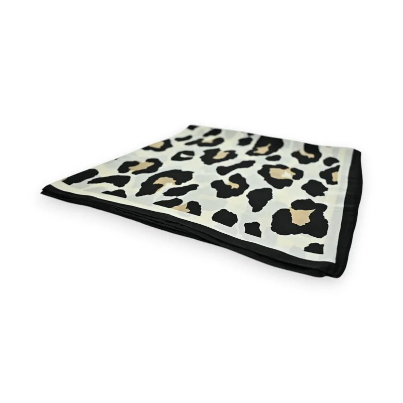 Add a touch of sophistication to your outfit with this beautiful square scarf featuring leopard patterns. In caramel and deep black tones, this 70x70cm square combines elegance and comfort thanks to its 100% polyester material with a silky feel comparable to silk. Its timeless animal print and careful finishes make it a versatile fashion accessory that will enhance your everyday outfits as well as your most refined looks. This scarf combines practicality and style with its ideal size of 70x70cm, allowing for multiple ways to wear it. Its soft and light texture offers optimal comfort throughout the day, while its trendy leopard pattern brings that wild and sophisticated touch to any outfit.