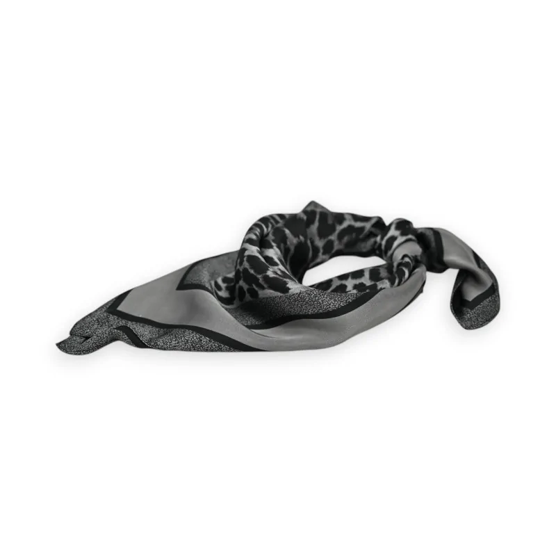 This trendy leopard print square scarf combines elegance and modernity with its shades of grey and black. Its silky texture and generous 70x70cm dimensions make it a versatile fashion accessory. Crafted from premium polyester offering a luxurious silk-like feel, it adds a sophisticated touch to any outfit. Its graphic and contemporary leopard print perfectly complements the structured border framing the pattern. The quality of the 100% polyester fabric ensures a fluid drape and optimal comfort, while guaranteeing excellent durability over time.