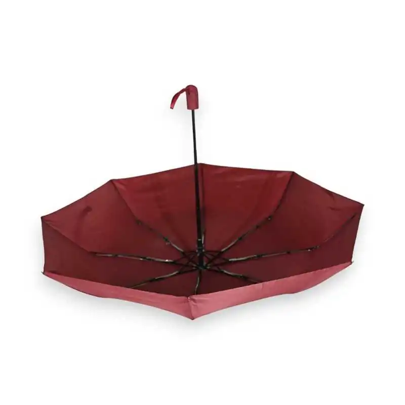 Pair this burgundy folding umbrella with neutral coats or vibrant scarves for a cohesive look. Open it automatically with a simple button press during sudden rain, or use the manual close for control. Its ergonomic handle ensures a comfortable grip, ideal for extended use. Store it easily in its compact sleeve, ready for commutes, vacations, or errands.