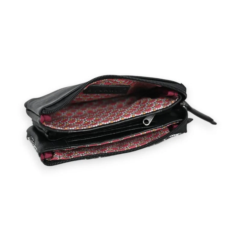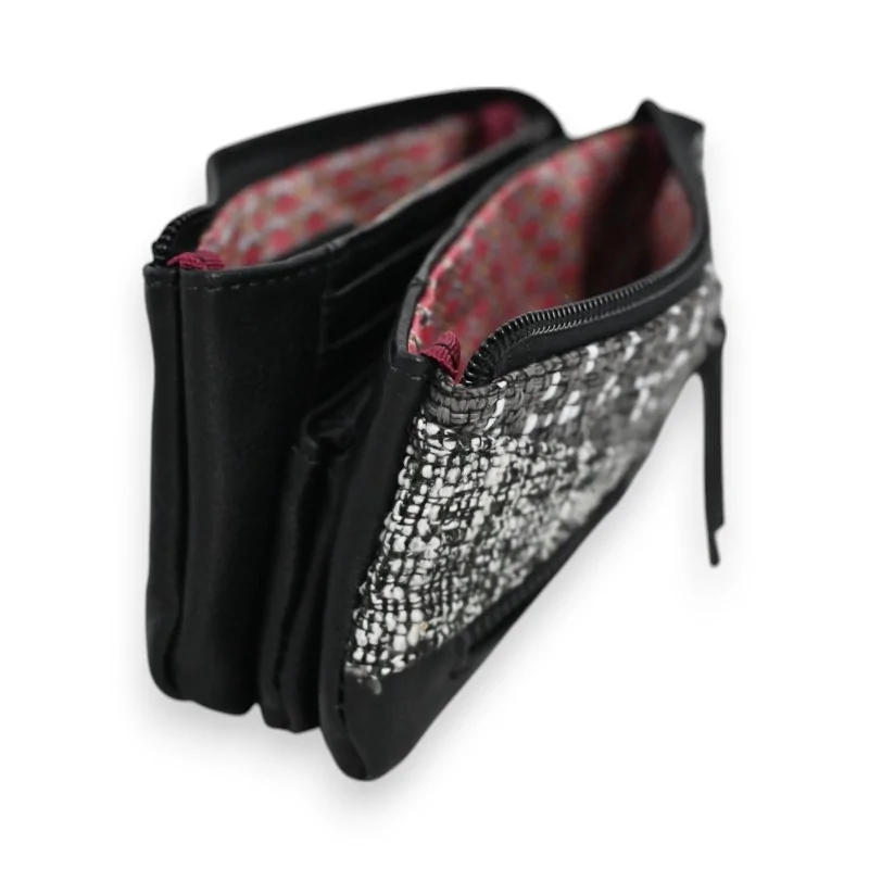 The Mélanie Paris wallet stands out with its distinctive aesthetic that combines modernity and elegance. Its sophisticated patchwork in synthetic material harmoniously blends different shades of black and gray, creating a unique pattern on each model. This exclusive composition makes each wallet a one-of-a-kind piece, impossible to replicate identically. Fashion enthusiasts will particularly appreciate this design that perfectly marries contemporary style with practicality.