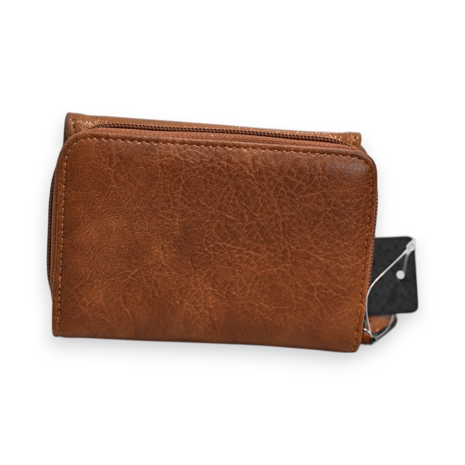 The compact Mélanie Paris wallet in camel-colored synthetic material combines elegance and functionality in an ideal format for daily use. Its dimensions of 14x9x2.5 cm make it a perfect accessory for all bags. The front part stands out with its shiny flap adorned with a matching strap and a magnetic clasp for easy and secure access.