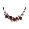 The Elena costume necklace stands out for its unique and refined floral composition. Each flower is meticulously crafted in shades of deep burgundy and delicate pink, creating a captivating visual harmony. The floral elements are punctuated with decorative pearls in burgundy and pink hues, while green leaves bring a natural contrast to the ensemble. The structure of the necklace is designed to offer a perfect balance between volume and lightness.