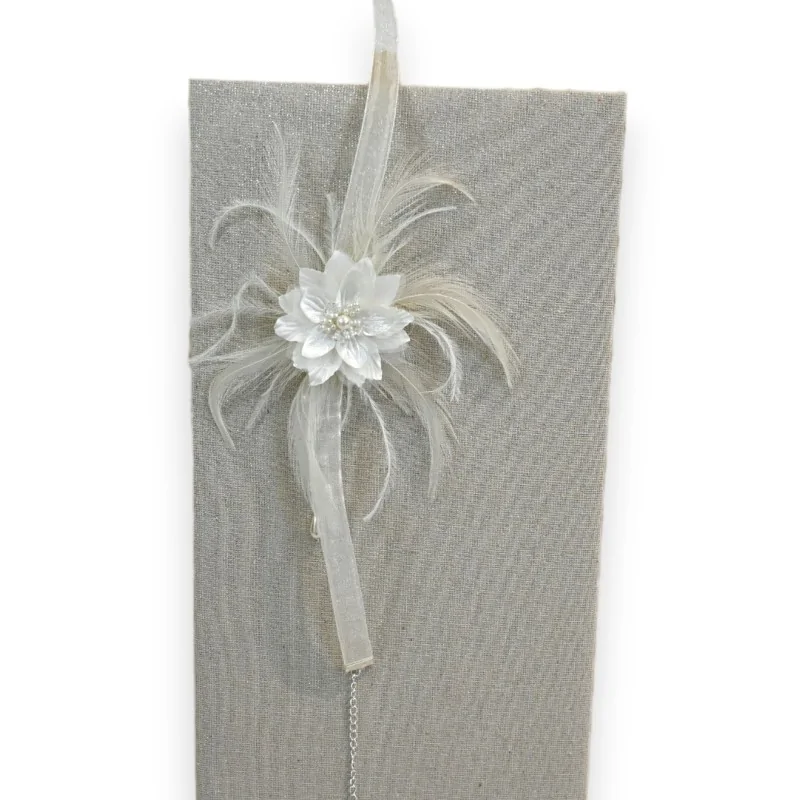 This beautiful white choker combines elegance and delicacy with its floral fabric ornaments, delicate pearls, and light feathers. Its unique design offers a perfect balance between sophistication and whimsy, ideal for enhancing both evening wear and casual outfits.