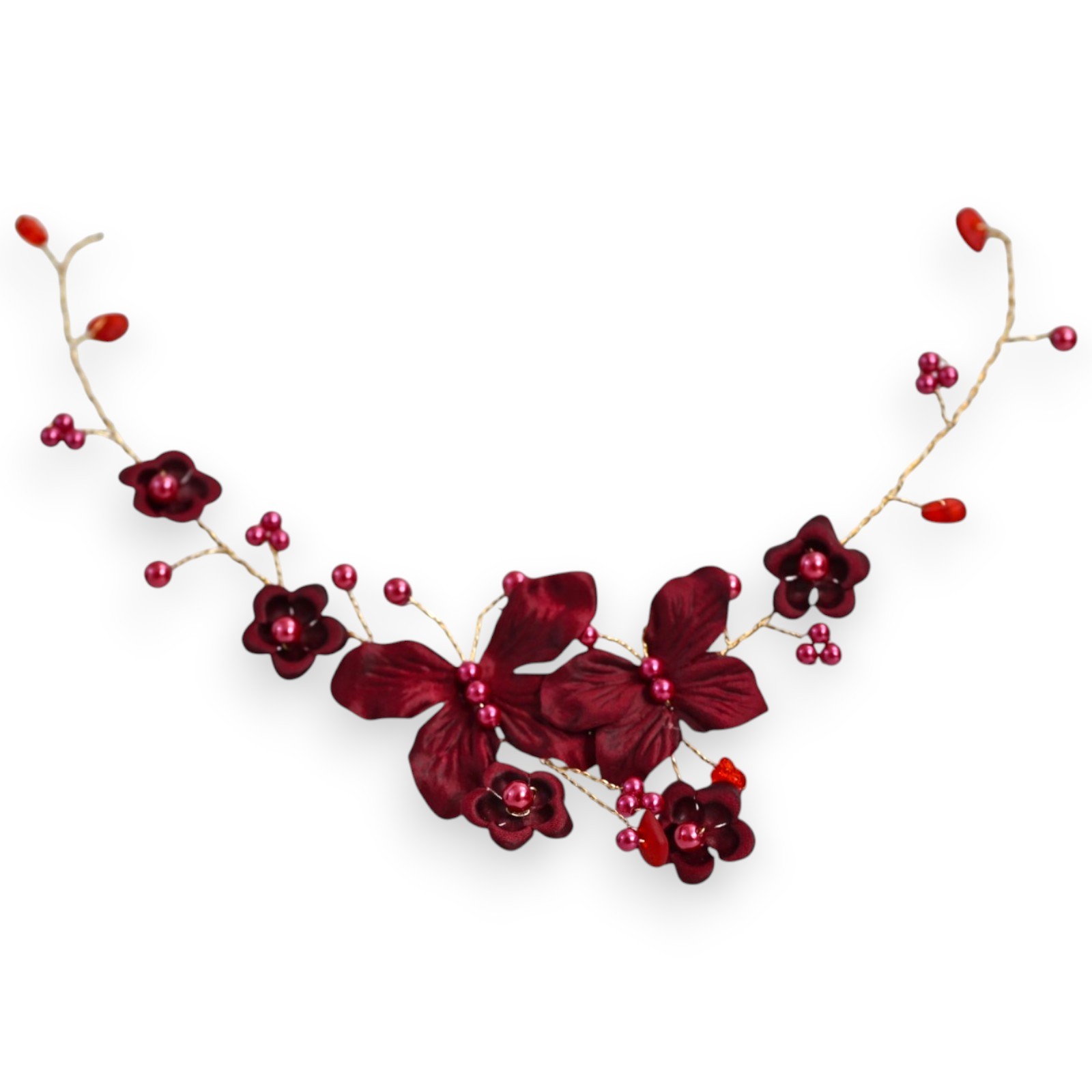 This floral necklace transcends the simple notion of an accessory to become the centerpiece of your outfit. Designed to magnify your most beautiful occasions, it stands as the ideal companion for wedding ceremonies, whether for the bride seeking a unique jewel or for guests wishing to perfect their outfit with elegance. Its deep burgundy tone is particularly well-suited for autumn or winter celebrations, but its delicacy allows it to adapt to all seasons.