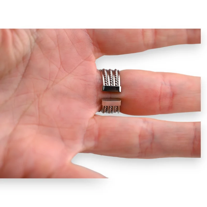 Esta anillo de acero inoxidable es una elegante fusión de varios anillos,...