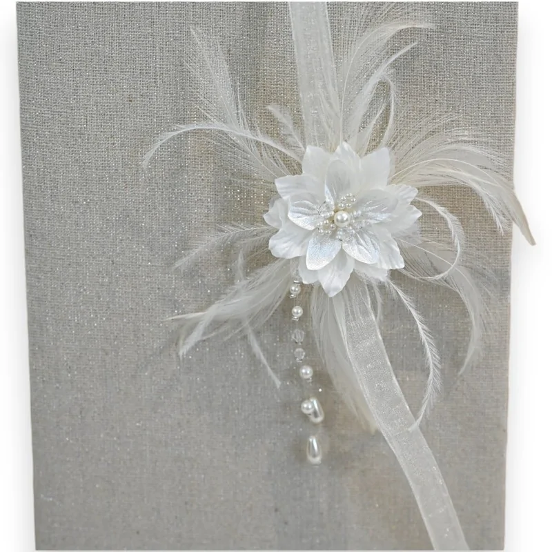 Este magnífico collar blanco combina elegancia y delicadeza con sus adornos florales de tela, sus delicadas perlas y sus ligeras plumas. Su diseño único ofrece un equilibrio perfecto entre sofisticación y fantasía, ideal para realzar tanto un atuendo de noche como un look casual.