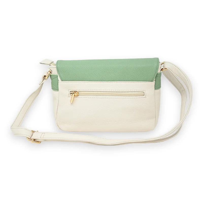 Este bolso bandolera, con su apariencia de maletín moderno, se distingue por su acabado en sutiles tonos de beige y verde, gracias a un material sintético que evoca con brío la textura del cuero auténtico. Las dos correas magnéticas ofrecen una apertura segura y práctica, mientras que los dos bolsillos frontales son ideales para las necesidades diarias. El interior del bolso, diseñado con esmero, incluye un gran bolsillo central con división para un óptima organización y bolsillos adicionales para almacenamiento extra. El bolsillo trasero con cremallera proporciona una protección adicional para tus objetos personales. Midiendo 25x20 cm, este bolso es una mezcla perfecta de elegancia funcional, ideal para los amantes de la moda en busca de un accesorio a la vez práctico y chic. Correa ajustable a tu conveniencia.