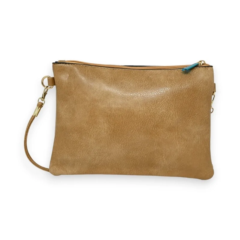 Este bolso tipo bandolera en color camel de material sintético es el accesorio perfecto para agregar un toque de elegancia a cualquier conjunto. En el centro, una estrella plateada brillante atrae la mirada, añadiendo un detalle cautivador al diseño sobrio del bolso. El bolsillo central se cierra con una cremallera, garantizando la seguridad de tus esenciales mientras ofrece un fácil acceso. La correa fina y ajustable permite llevarlo como bandolera para un estilo informal o al hombro para un look más chic. Con sus dimensiones de 23 cm de ancho y 16 cm de alto, este bolso es ideal para transportar tus objetos personales sin estorbo, combinando perfectamente con una gama de estilos de vestir, desde los más informales hasta los más formales.