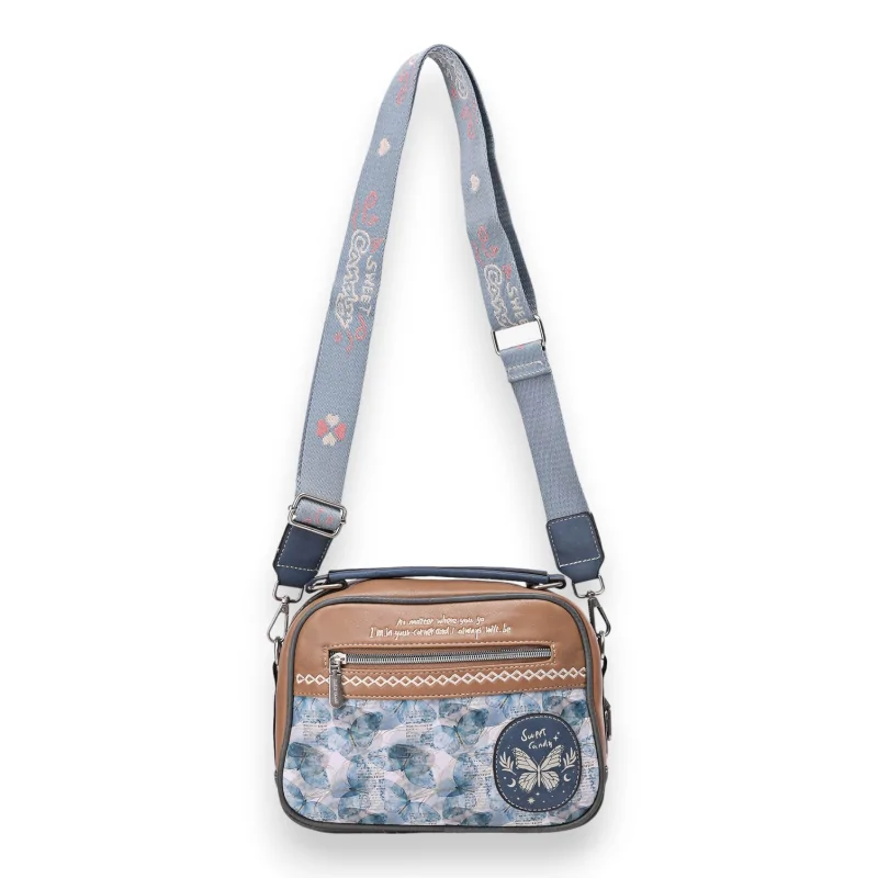 Descubre el bolso de hombro cuadrado de la marca Sweet & Candy, realzado por un encantador estampado de mariposas multicolores en tonos de azul tranquilos y elegantes. Este bolso se distingue por un bolsillo con imán en la parte frontal, ideal para un fácil y rápido acceso a tus pequeños objetos. El gran bolsillo central, equipado con bolsillos en el interior, ofrece un espacio de almacenamiento amplio y organizado para tus cosas. En la parte posterior, un bolsillo con cierre asegura una seguridad adicional para tus objetos de valor. Este modelo versátil cuenta con un asa en la parte superior, lo que permite llevarlo de diferentes formas según tus necesidades. La correa ajustable de tela de moda garantiza una comodidad óptima y un ajuste perfecto. Con sus dimensiones de 25x19x7 cm y sus acabados cuidados, este bolso es sinónimo de calidad y estilo refinado.