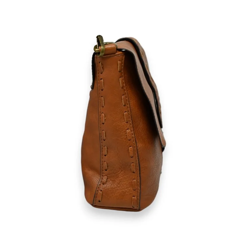El bolso bandolera Mandoline de material sintético en color camel es el accesorio perfecto para tus salidas diarias. Con sus dimensiones compactas de 24x22cm, ofrece un espacio de almacenamiento óptimo sin ser voluminoso. Equipado con dos correas bandolera intercambiables, una lisa en color camel y otra de tela con estampado de moda, este bolso se adapta a todos tus estilos. Sus múltiples bolsillos interiores, incluyendo uno en la parte trasera, te permiten organizar tus pertenencias de manera eficiente.