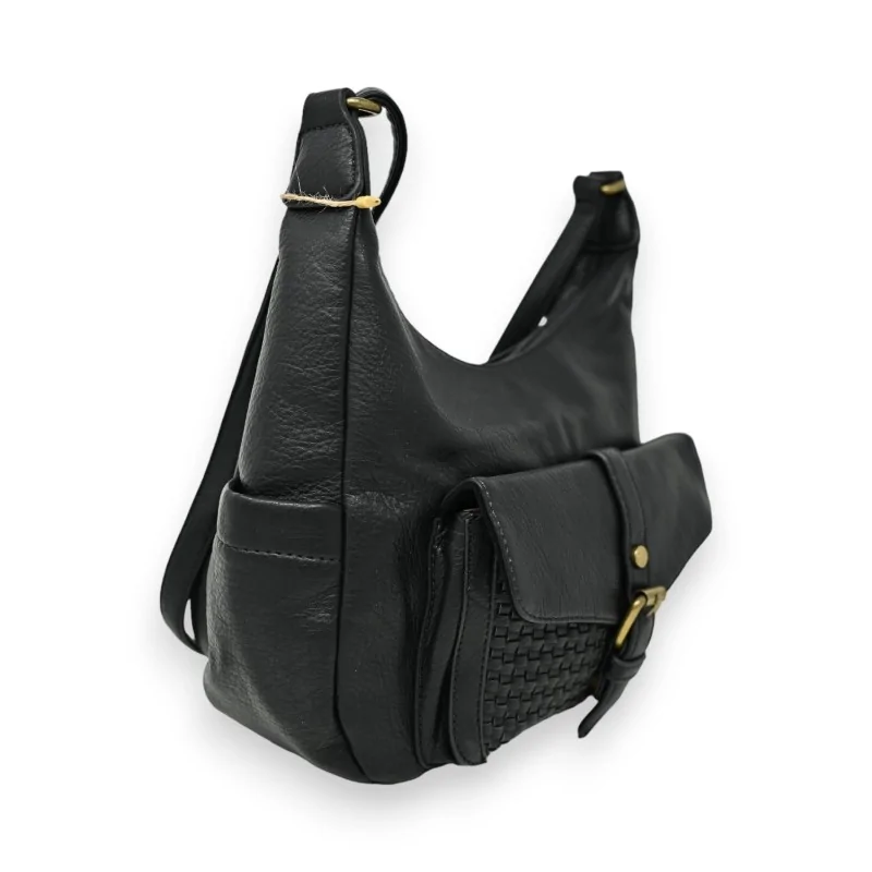 El bolso bandolera negro Mandoline combina estilo y practicidad. Fabricado en material sintético de alta calidad, este bolso compacto de 27x24 cm ofrece múltiples compartimentos con un bolsillo delantero, un bolsillo central compartimentado y un bolsillo trasero. Su correa ajustable asegura un porte cómodo. Un accesorio elegante y funcional para tus salidas diarias.