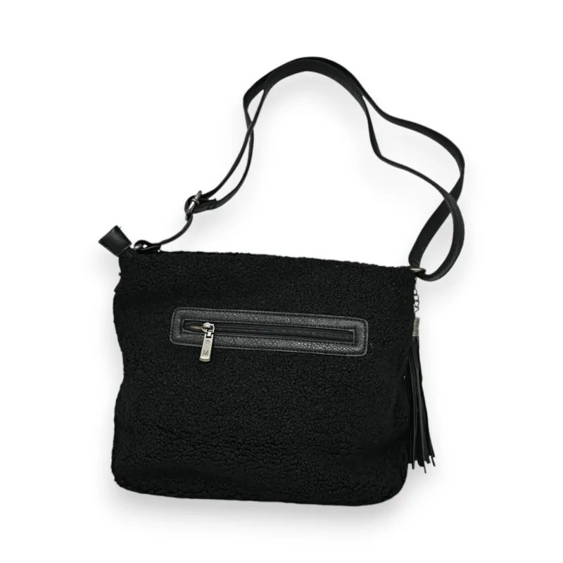 Este bolso bandolera Mandoline combina estilo y practicidad. Confeccionado en tejido bouclé negro, luce una hermosa estrella central brillante que aporta un toque de elegancia. Con su gran bolsillo central que incluye compartimentos interiores y una separación, así como un bolsillo en la parte trasera, ofrece un almacenamiento óptimo. Su correa ajustable permite un uso cómodo. Dimensiones: 30x25cm.