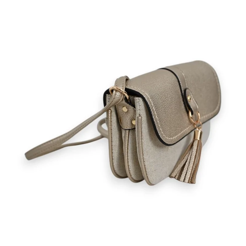 El bolso bandolera Mélanie Paris combina elegancia y practicidad con su diseño de dos materiales que une sintético y lona de lino beige. Su solapa dorada adornada con un cierre magnético le otorga un toque sofisticado, mientras que sus tres compartimentos separados ofrecen un almacenamiento óptimo para sus efectos personales.