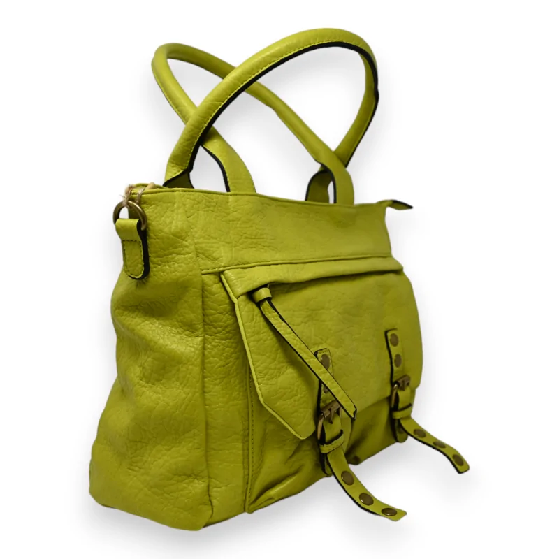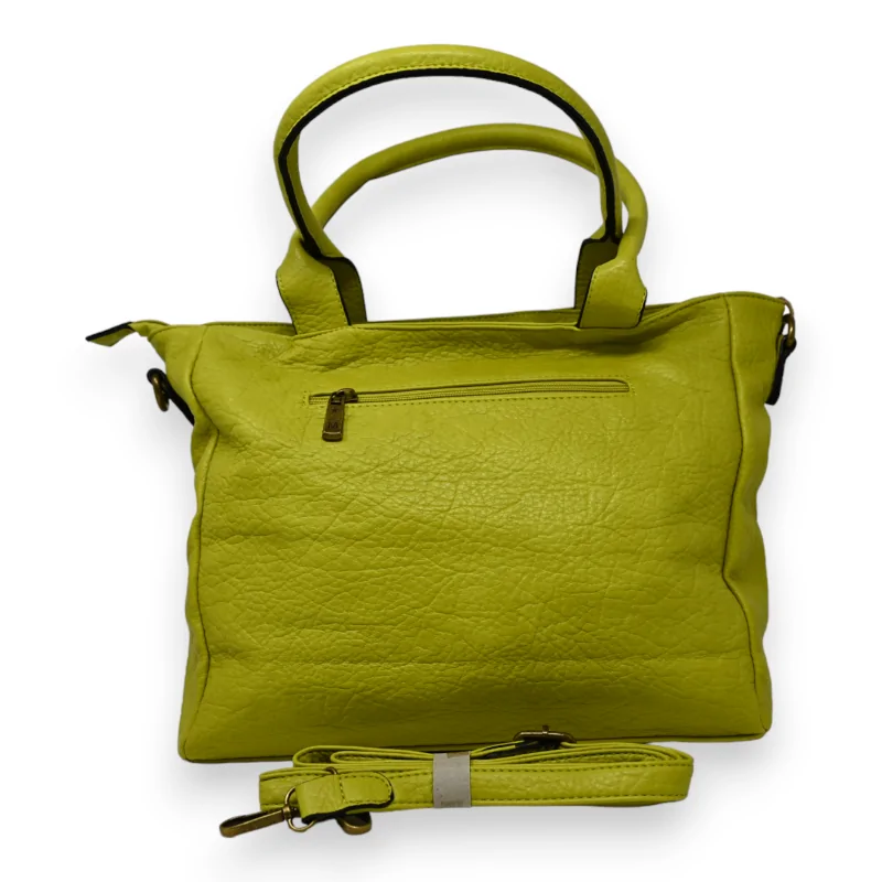 Este bolso de mano verde anís, a la vez moderno y notablemente versátil, está diseñado para cumplir con las exigencias de la vida moderna con sus soluciones de almacenamiento innovadoras. La tapa elegantemente diseñada está equipada con correas magnéticas de fantasía, ocultando dos bolsillos para una fácil organización de tus necesidades. Un bolsillo oculto debajo de la tapa añade una dimensión adicional de practicidad. El corazón del bolso se abre a un gran bolsillo central, separado para una organización óptima, flanqueado por bolsillos internos para mantener todos tus artículos en orden. Un bolsillo trasero externo ofrece un espacio de almacenamiento adicional seguro. Con su correa ajustable y desmontable, este bolso, que mide 33x29 cm, es ideal para aquellos que valoran la flexibilidad sin comprometer el estilo o la funcionalidad.