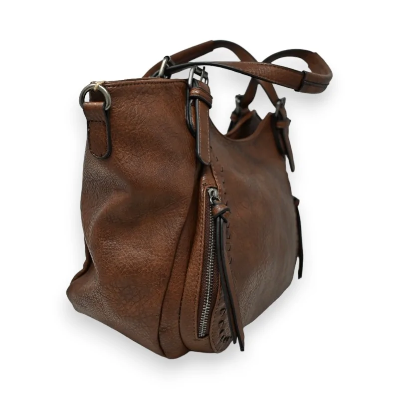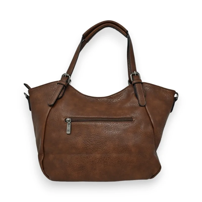 Este bolso se distingue por su versatilidad y funcionalidad. Equipado con dos bolsillos frontales de fácil acceso, le permite guardar sus objetos pequeños al alcance de la mano. El gran bolsillo central, espacioso y bien organizado gracias a sus compartimentos interiores, aloja fácilmente sus pertenencias más voluminosas. Un bolsillo adicional en la parte trasera del bolso ofrece un espacio de almacenamiento seguro para sus objetos de valor.