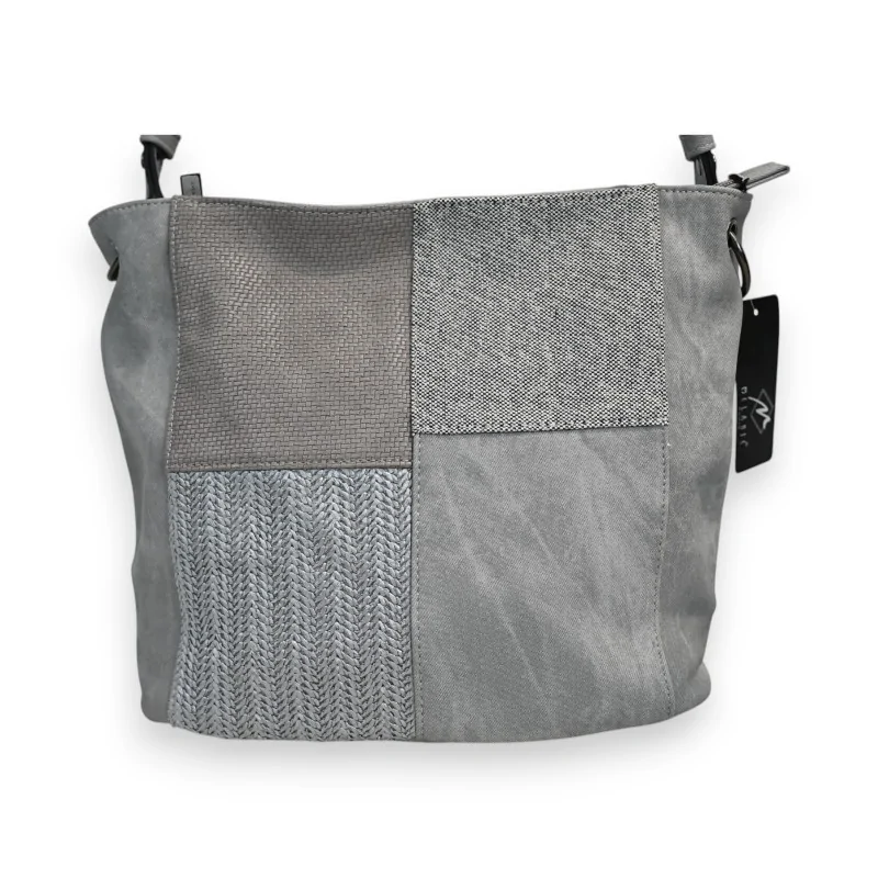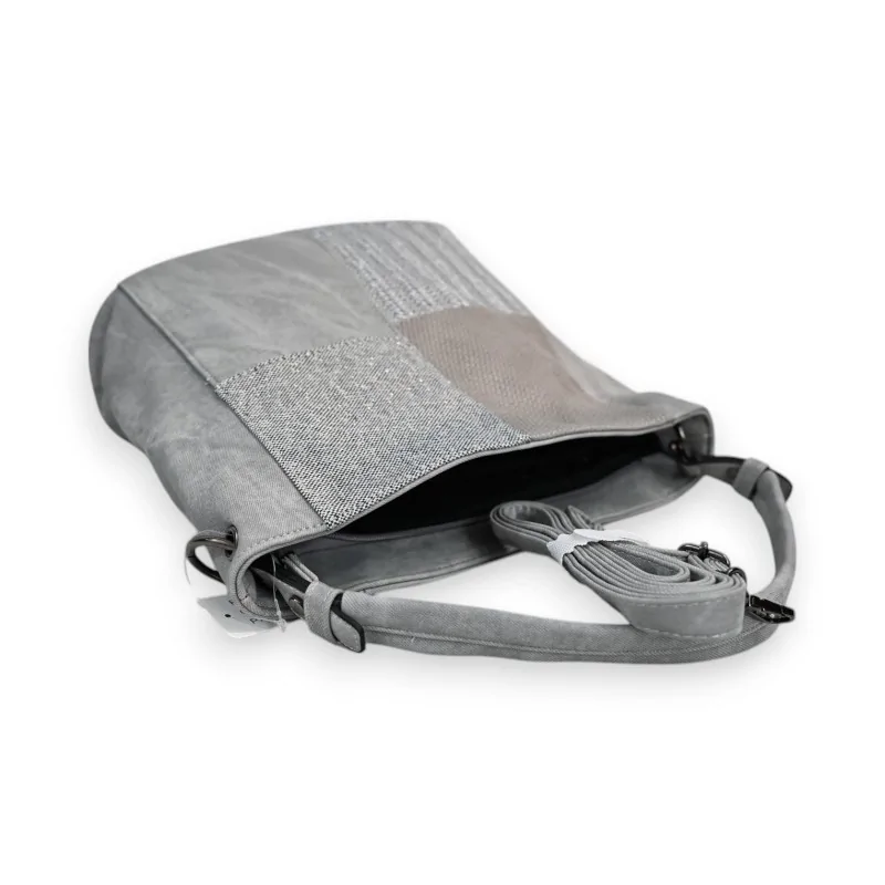 El bolso patchwork Mélanie Paris destaca por su diseño contemporáneo en sintético gris. Su motivo patchwork en la parte delantera combina diferentes texturas para un estilo único y refinado. Este modelo espacioso de 36x26cm ofrece una organización óptima gracias a su gran bolsillo central y sus compartimentos laterales.