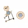 Este broche magnético de gato con gafas trasciende los códigos de la bisutería tradicional. El diseño de street art kawaii seduce por sus detalles cuidados: bigotes dorados delicados, vestido negro acampanado con detalles grises, y patinete con ruedas grises perfectamente proporcionadas.
