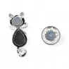 Este broche imantado gris presenta un diseño único que realza dos piedras naturales auténticas con delicadas vetas marmoleadas. La cabeza del gato está compuesta por una piedra redonda gris claro con tonos perla y blanco roto, mientras que el cuerpo luce una piedra gota antracita más oscura creando un magnífico degradado natural.