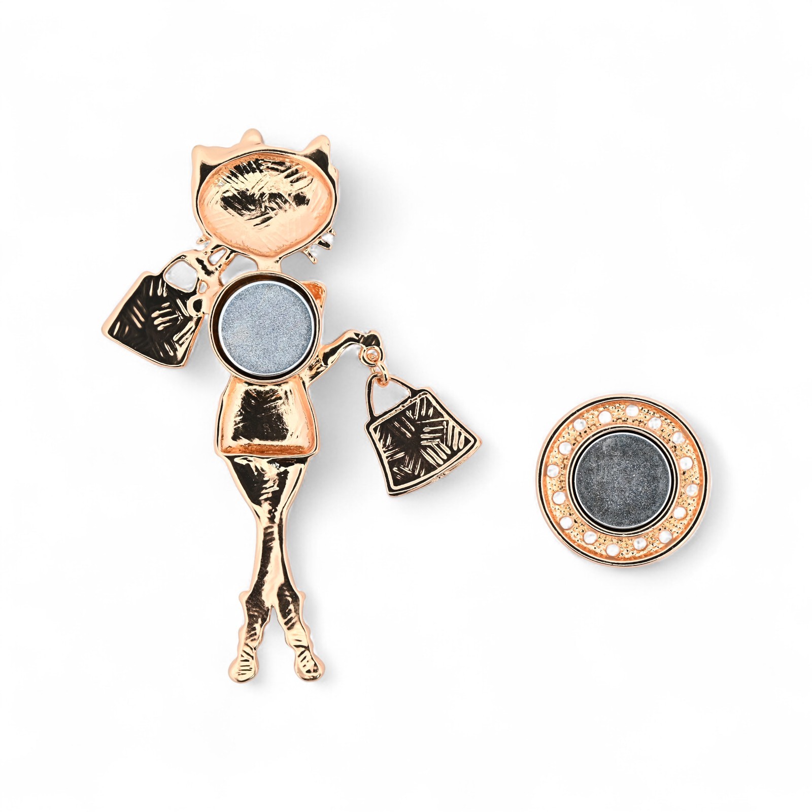 Este elegante broche magnético en forma de corazón añadirá un toque de encanto a tus atuendos. Confeccionado en metal dorado, mide 5x4.5cm y presenta un diseño original con diferentes elementos decorativos. Su cierre magnético lo hace fácil de fijar en tu ropa sin dañarla. Un accesorio de moda femenino a la vez refinado y práctico para realzar tus looks diarios.