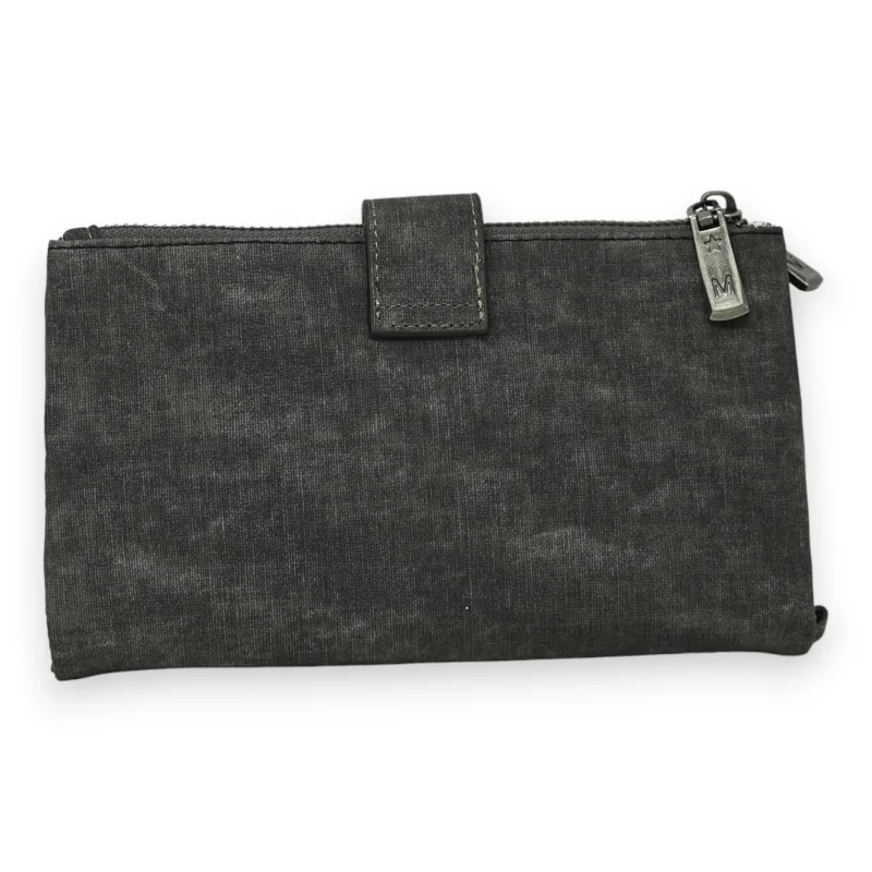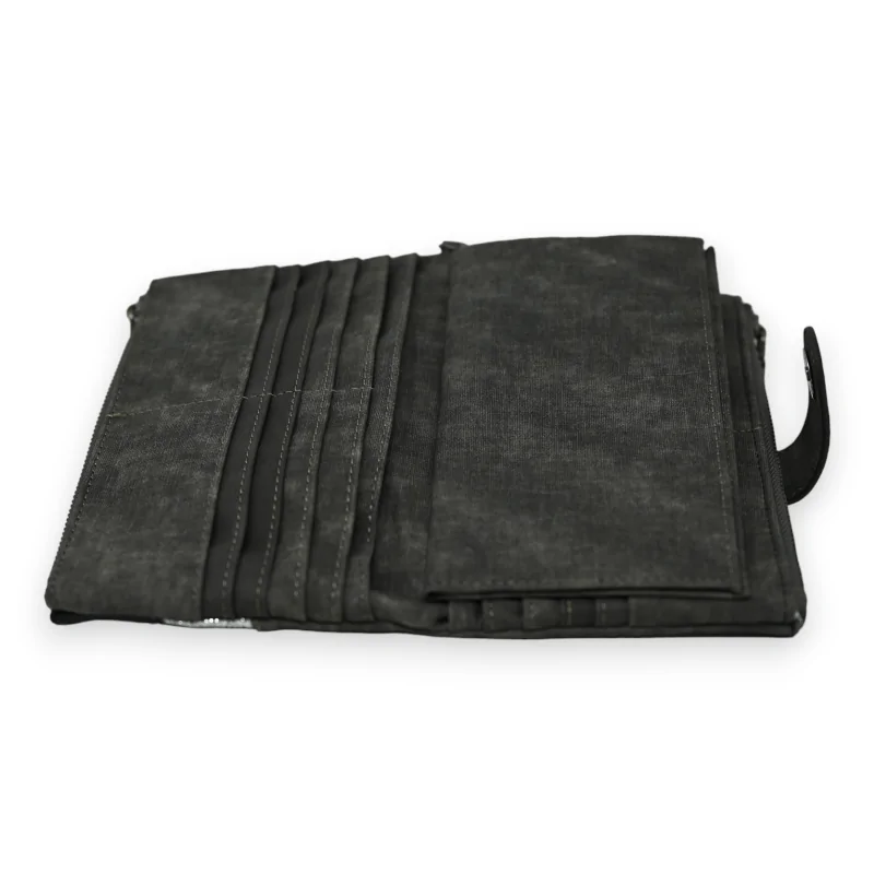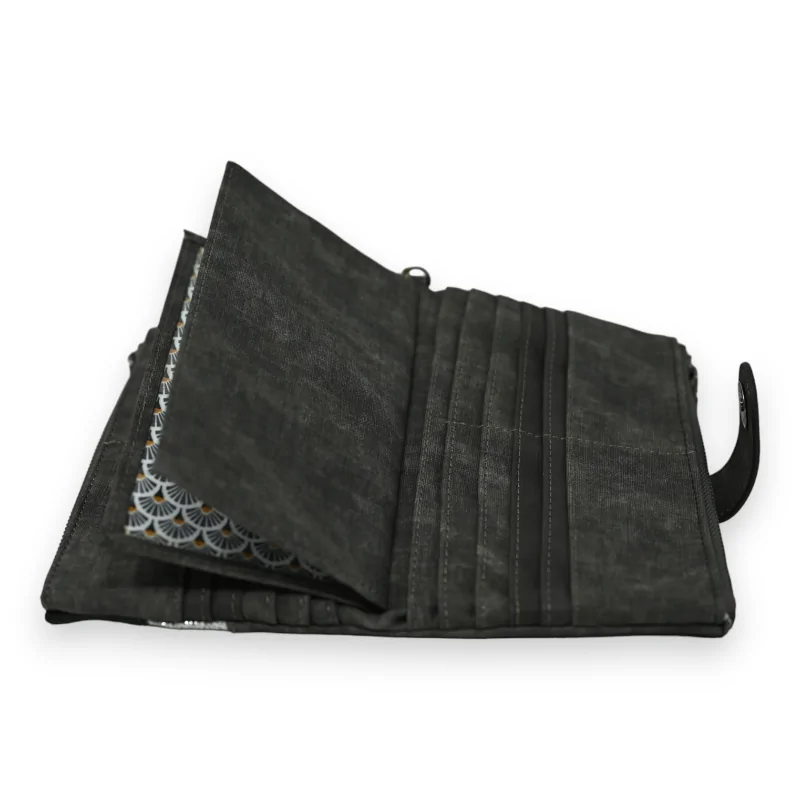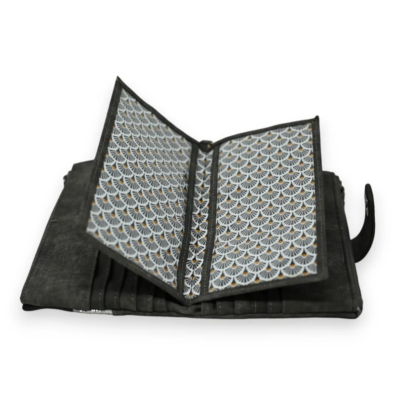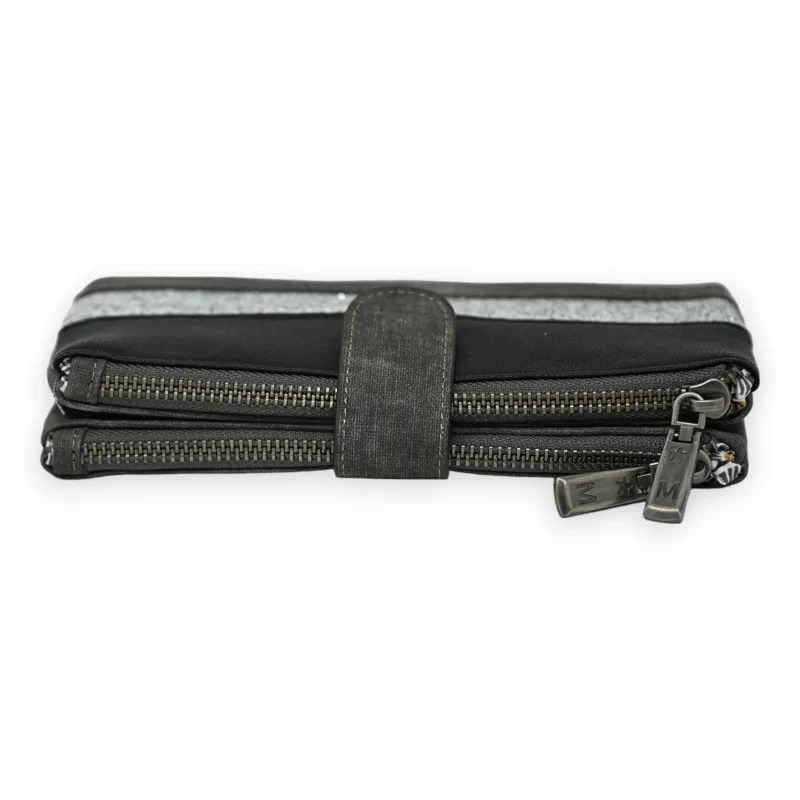 Este monedero acompañante encarna el matrimonio perfecto entre elegancia e ingenio, con su predominante gris deslavado realzado por acentos de negro y plata brillante, que juntos, elevan su estética. El cierre magnético facilita el acceso a un interior diseñado para maximizar la organización, incluso proporcionando un espacio reservado para la chequera, evidencia de su diseño considerado. En los extremos, los dos bolsillos con cremallera resultan ideales para asegurar el cambio o otros pequeños objetos, aumentando así su funcionalidad. Confeccionado en un material sintético de alta gama que emula maravillosamente la sensación del cuero, este monedero combina flexibilidad y durabilidad. Con sus dimensiones prácticas de 19x12 cm, está destinado a convertirse en un elemento clave de su organización diaria, combinando con brillantez estética y practicidad.