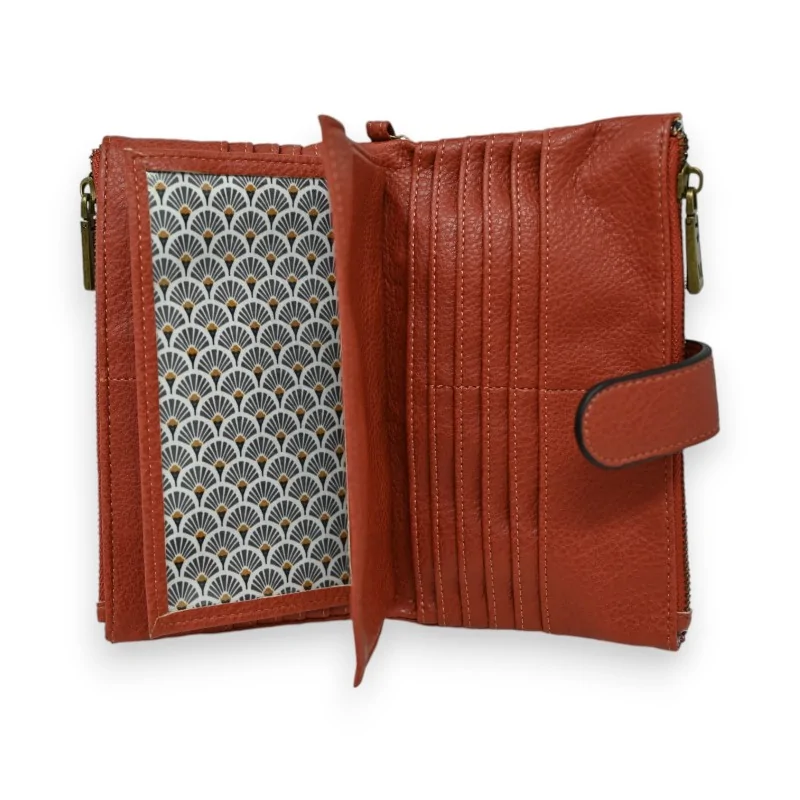 Con sus dimensiones de 19x11cm, esta cartera compacta encuentra fácilmente su lugar en un bolso o en el bolsillo de una chaqueta. El color ladrillo de moda aporta un toque de originalidad mientras se mantiene sobria y versátil. El cierre magnético asegura un cierre seguro a la vez que permite un acceso rápido a sus pertenencias.