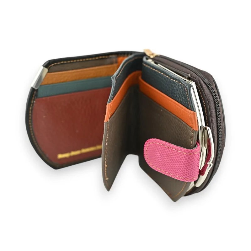 Esta cartera compacta Kenny Jones combina estilo y funcionalidad gracias a su diseño patchwork multicolor en cuero. Sus dimensiones de 10,5 × 11 × 4 cm la convierten en un accesorio práctico para deslizar en todos los bolsillos. La apertura con cierre magnético facilita el acceso a múltiples compartimentos: tarjetero, billetero, bolsillo plastificado, monedero de metal plateado y bolsillo con cremallera. Se entrega en su elegante caja de regalo.