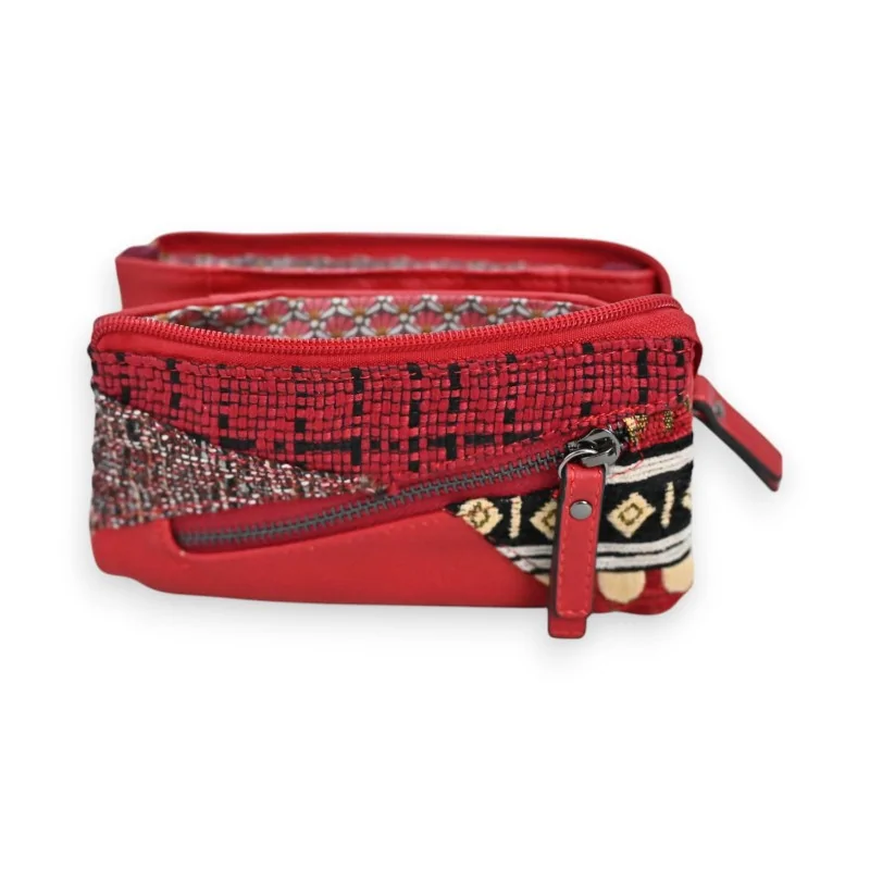La cartera patchwork Mélanie Paris combina estilo y funcionalidad en un formato compacto de 16x9cm. Su parte delantera luce un patchwork único en tonos rojos, haciendo que cada pieza sea exclusiva. Con tres compartimentos con cremallera separados y espacios dedicados para tarjetas, ofrece una organización óptima de tus elementos esenciales.