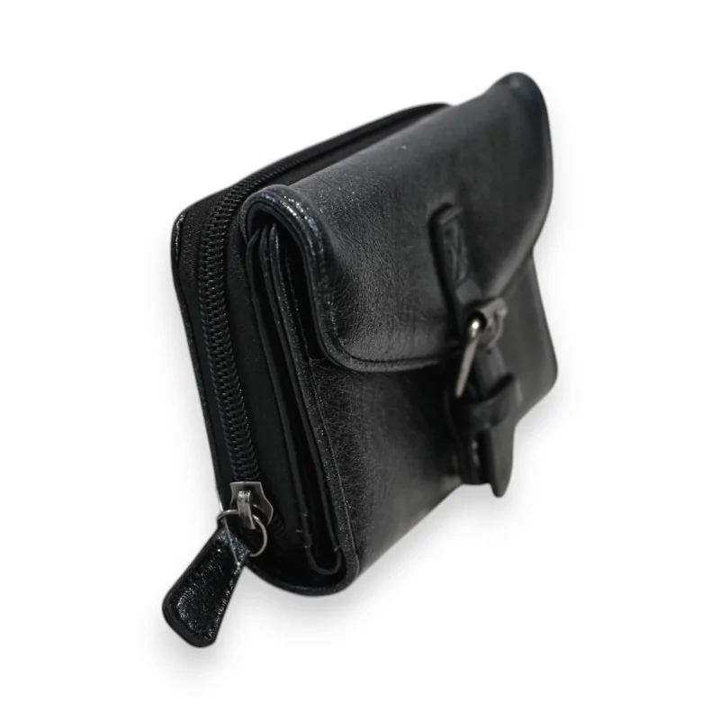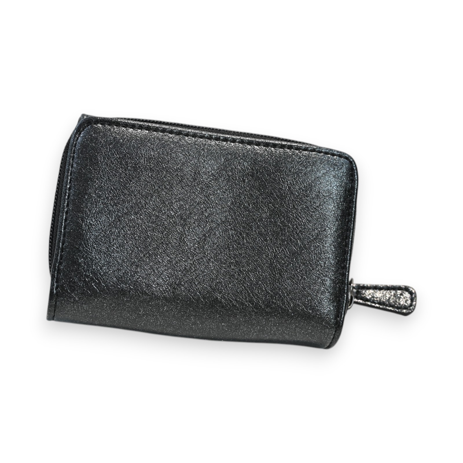 La cartera compacta Mélanie Paris combina estilo y funcionalidad en un formato ideal para el uso diario. Su acabado en sintético negro brillante le confiere un aspecto sofisticado, mientras que su ingenioso sistema de organización permite ordenar fácilmente tarjetas, monedas y billetes. Con sus dimensiones de 14 x 9 x 2,5 cm, cabe perfectamente en todos los bolsos.