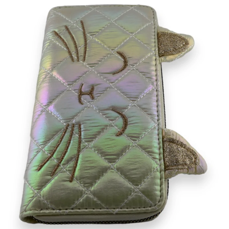 Descubre el monedero con un diseño único inspirado en el gato, con un efecto 3D impresionante. Su acolchado blanco nacarado juega con la luz para revelar un espectro de reflejos multicolores. Y para acentuar su encanto, está adornado con pequeñas orejas en relieve. Pero más allá de su atractivo de estética, este monedero es un concentrado de funcionalidad: un compartimento para sus monedas, espacios para sus tarjetas y un espacio para sus billetes, todo en un formato compacto y práctico.