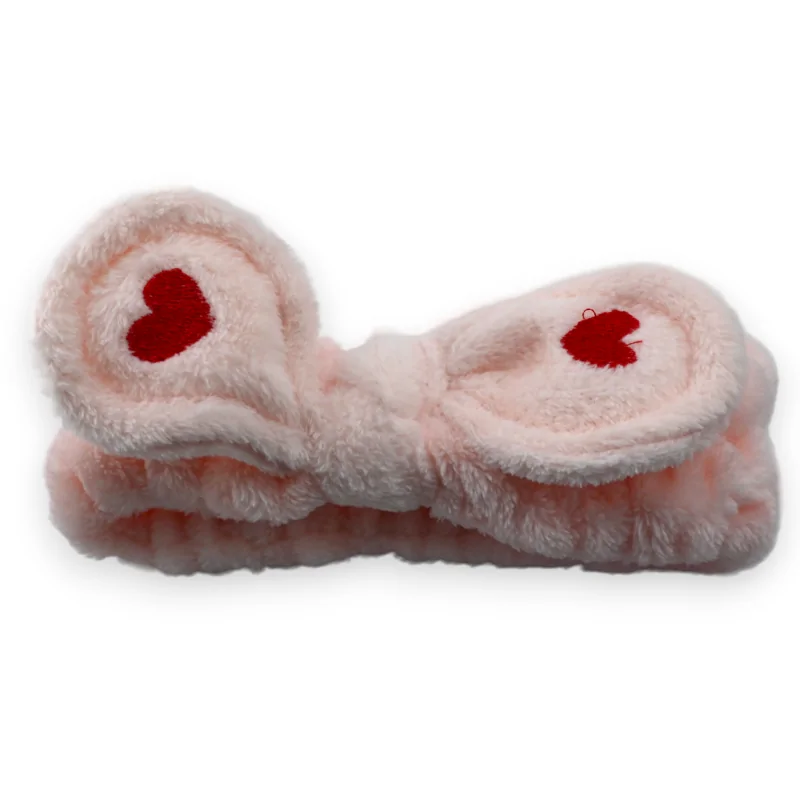 Banda de maquillaje para mujer en tono rosa suave con corazón atado